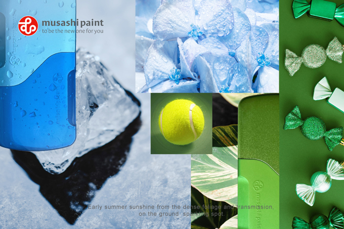 初夏的阳光从茂密的树叶透射出来,在地上闪闪发光,武藏运用大颗粒的珠光来诠释这只属于夏天的浪漫光斑绿;