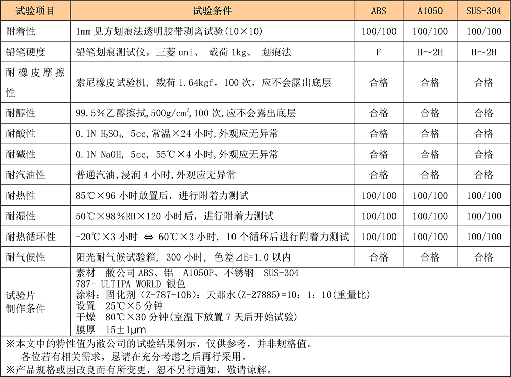 本产品 ULTIPA WORLD 为双组分丙烯酸-硅涂料,对各种金属素材及塑料素材等涵盖范围广泛的素材具备良好的附着性,因此像金属素材与塑料素材一体化成型的各被喷涂物只需喷涂一次即可。此外,本品使用时还不易出现喷涂外观(色调、光泽)差异,是一款能有效提高生产效率的涂料。